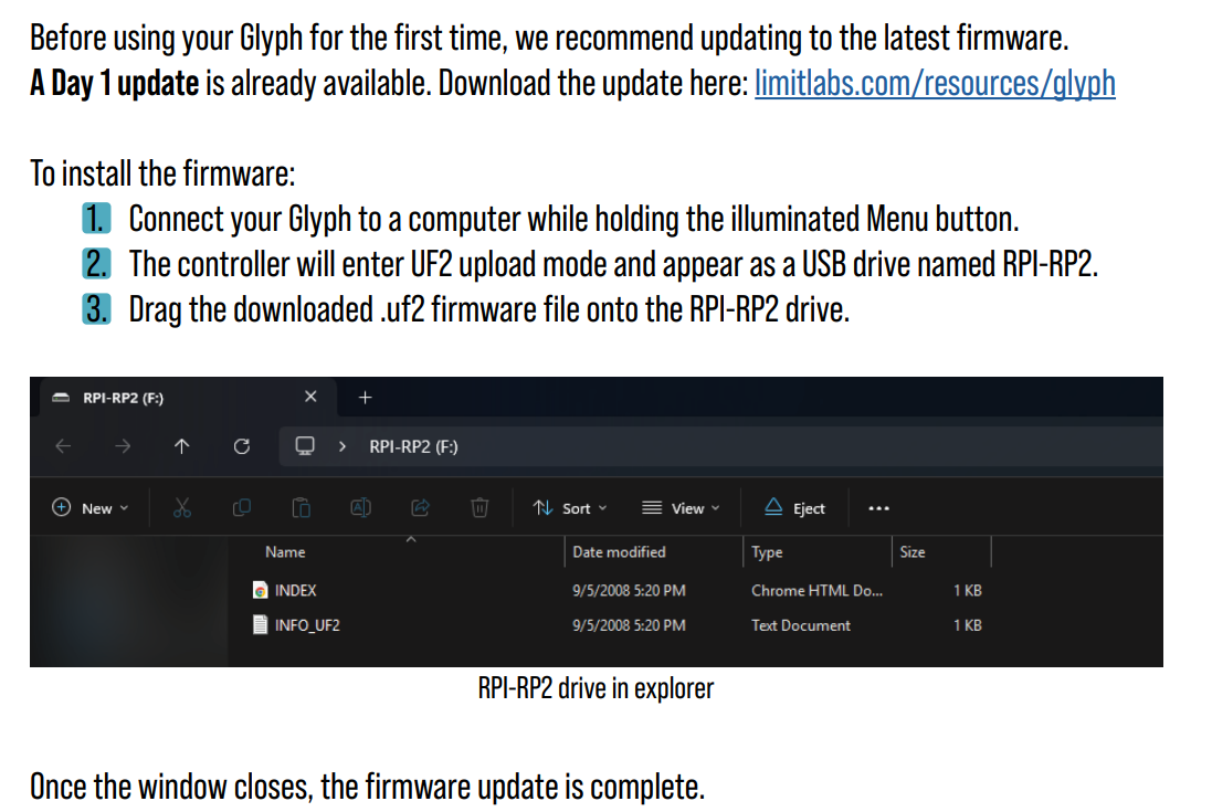 Download the latest firmware for the Glyph.